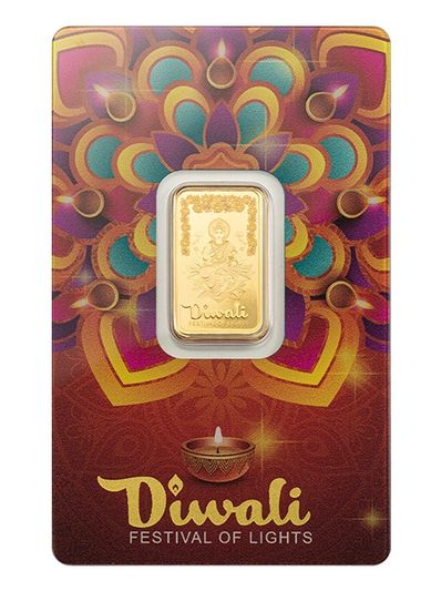 CLICK HERE TO Celebrate the spirit of Diwali with the 5 g Lakshmi & Rangoli Pure Gold Bar